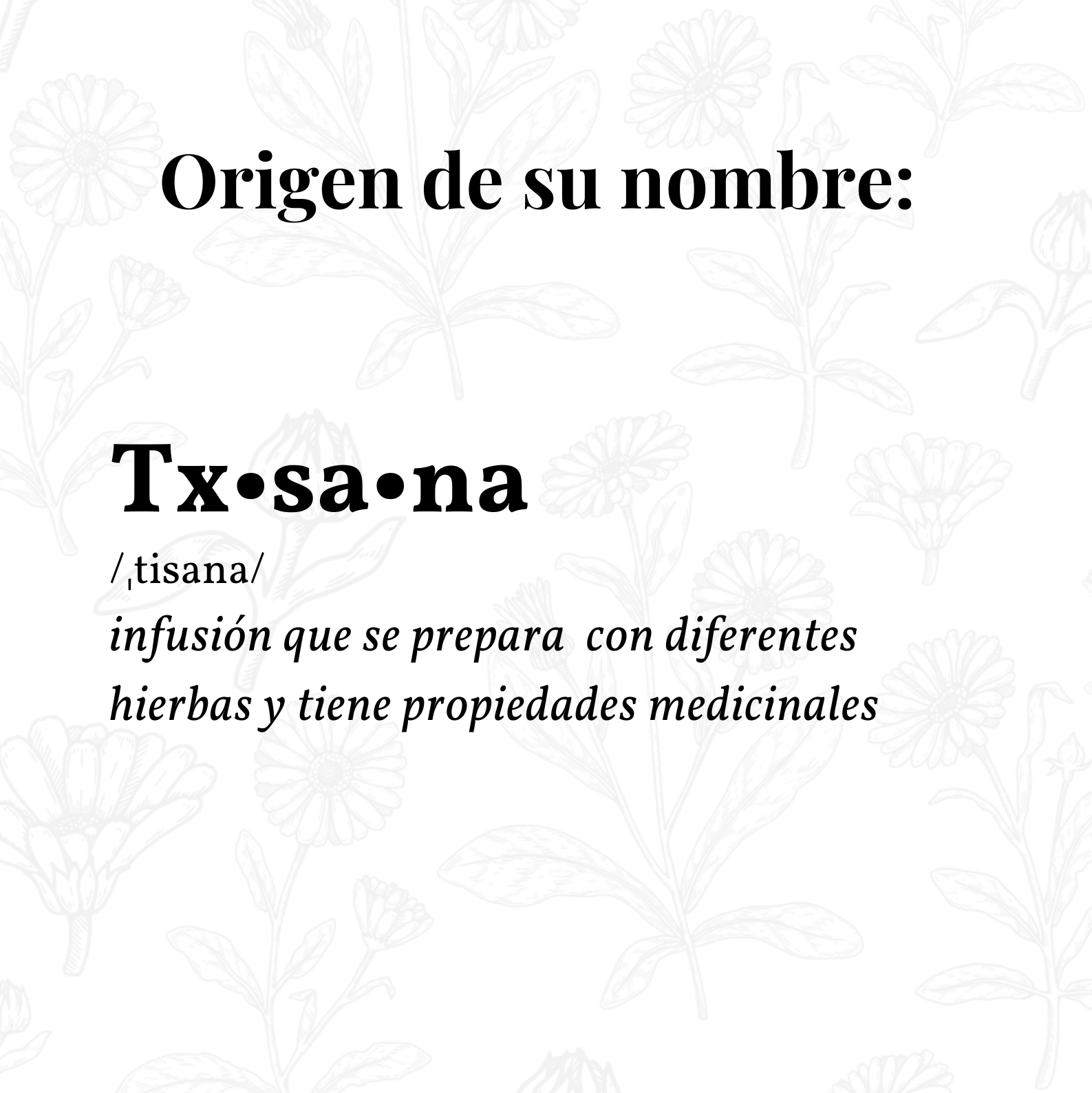 Txsana no es otra cosa que la palabra tisana. Tisana es una bebida que se prepara infusionando hierbas, flores, hojas, raíces o frutas en agua caliente, lo que coloquialmente conocemos como té(luego te doy más detalles).
